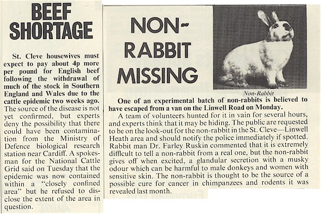 Apr. 25th, 2011 12:47 pm| "Туп будто дуб" — гениальный перевод названия известного альбома Jethro Tull, предлагаемый русской википедией. В данном случае эти слова применимы ко мне: юбилейное издание альбома на компакте у меня есть уже лет пятнадцать, но за всё это время я так и не удосужился рассмотреть прилагаемый к нему номер вымышленной газеты "The St. Cleve Chronicle" дальше первой полосы, на которой собственно была помещена история о восьмилетнем "авторе" текстов альбома. А оно того стоило: 12 страниц чистейшего стёба над провинциальной прессой. Эти страницы выложены, например, здесь или здесь. Среди прочего, там упоминается некролик. |